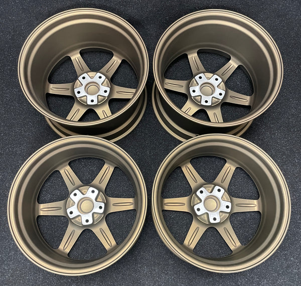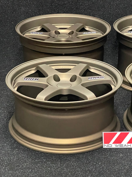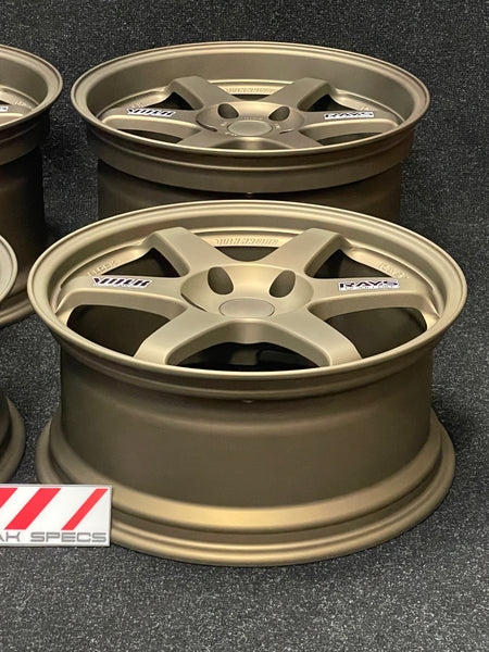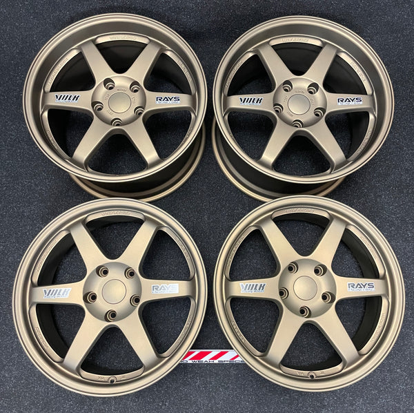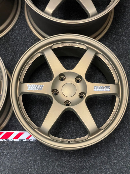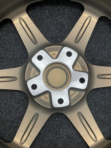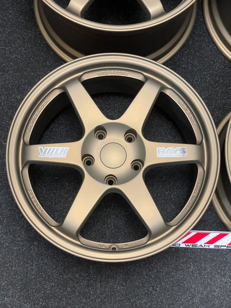 Excited to bring you another set of rare native OG 5x130 Porsche spec TE37s in sought after 19" diameters. Perfect for your 996 or 997. Just completed makeover featuring Matte Bronze powder coat and fresh OG spoke stickers.